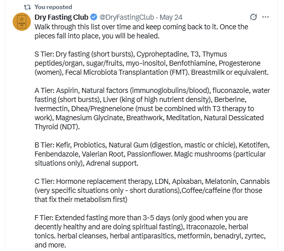I just had a consultation with someone who was asking why I should eat higher carbs and lower fat after a dry fast. Even after I went through all the basic explanations, I realized that I need to organize these into concise, one-page image explanations so that people can grasp what I'm trying to say much more easily. At the same time, there is also a big resistance to this information. It reminds me of Bitcoin when I was advocating for it 10 years ago. There's a saying: "Everyone buys bitcoin for the price they deserve".